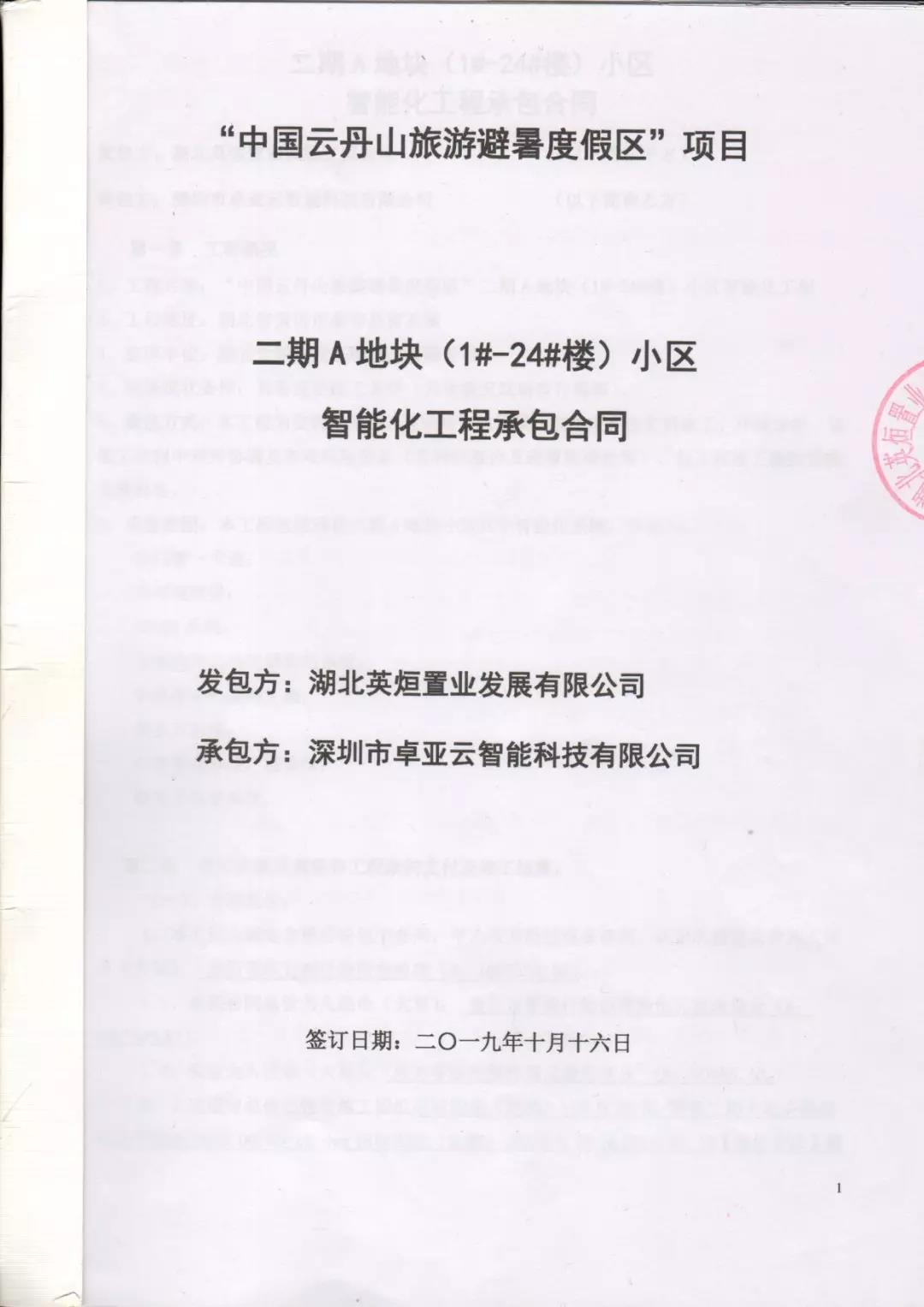 2019年10月16日,深圳市麻花传剧MV在线看星空雲智能科技有限公司與湖北大(dà)漢隆城(chéng)投資開發集團旗下湖北英烜置(zhì)業發展有限公司簽(qiān)訂《智能化工程承包合同》,根據協議,雙(shuāng)方將共同開展大數據(jù)、雲計算、物聯網、人工智(zhì)能在(zài)智能家居,智慧酒店,智慧社區,智慧度假區業務場(chǎng)景的深度合作,共同推動中國雲丹山(shān)旅遊度假區的智能家居(jū),智(zhì)慧酒店(diàn),智慧社區,智慧(huì)度假區相關業務的落地。