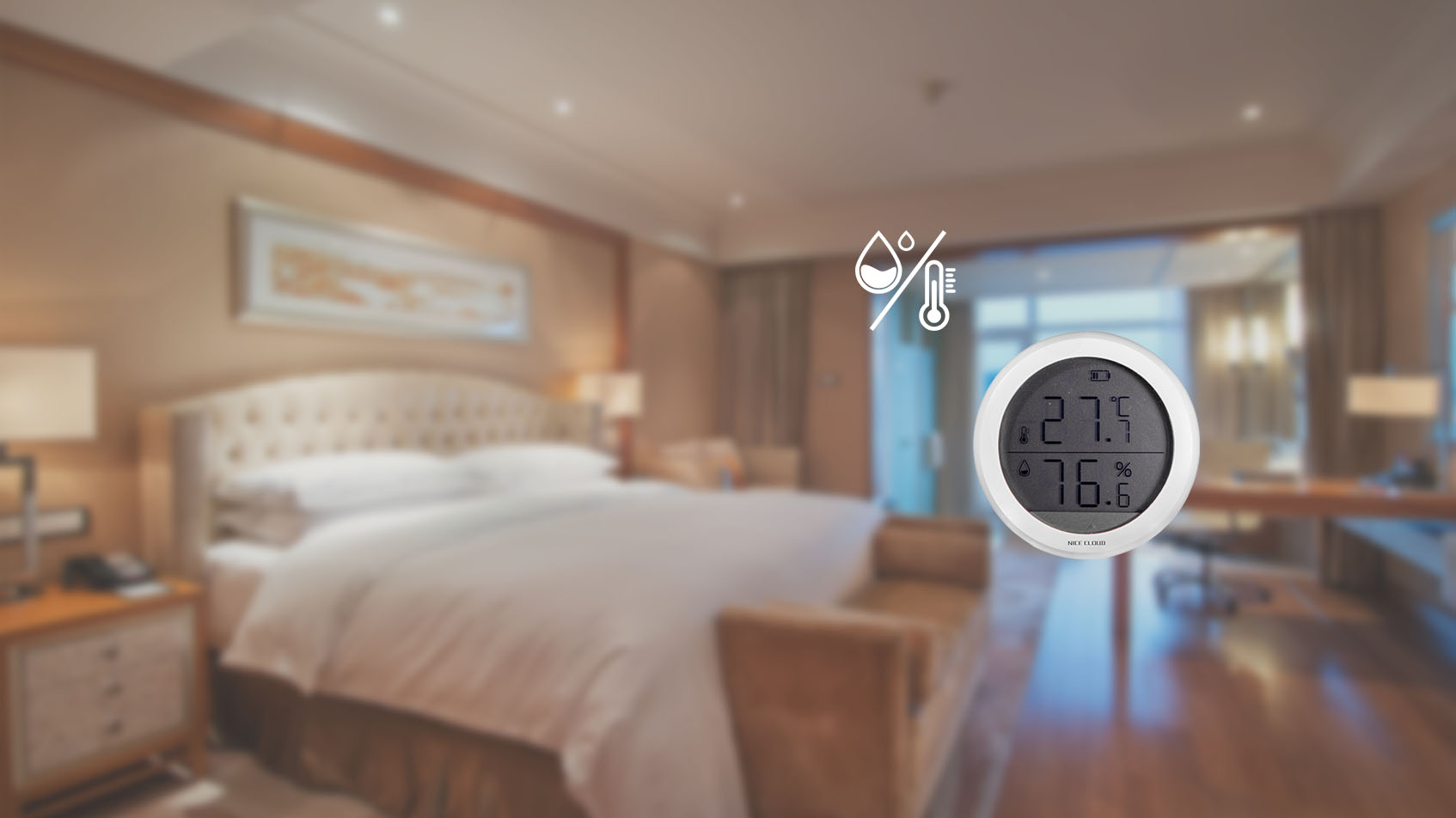 用於檢測(cè)溫溫度度(dù)變化的傳感器,把當前(qián)檢測到溫濕度顯示出來,傳(chuán)感器還可以向網關發送環境溫濕度信號,通過控製麵板,客人可對空調係(xì)統進(jìn)行控製。運用酒店客房(fáng)管理軟(ruǎn)件,前台服(fú)務員可為房間設置“入住(zhù)模式”,在客人入住客(kè)房之(zhī)前,房間自動調節到舒適的溫度以迎接客人入住,當客人(rén)拔卡離開房間,空調溫度自動升高,離開超過設定時間,空調將自動關(guān)閉。